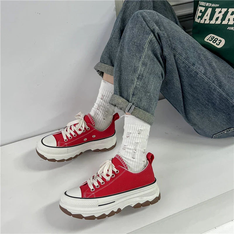 Chunky Platform Design: The platform sole not only boosts your height but also gives these sneakers a bold, fashion-forward look.