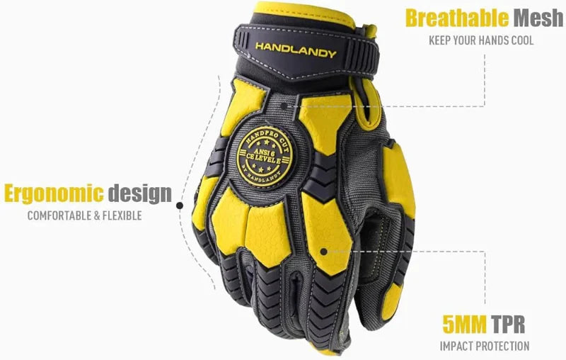 Discover our durable work gloves designed for demanding professionals. Featuring Level 6 cut protection and impact resistance, these gloves provide maximum safety while maintaining flexibility and ease of use.